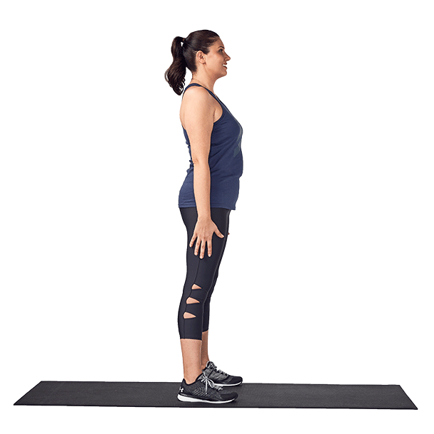 1. Stand with your feet slightly wider than hip width and your toes turned out slightly.