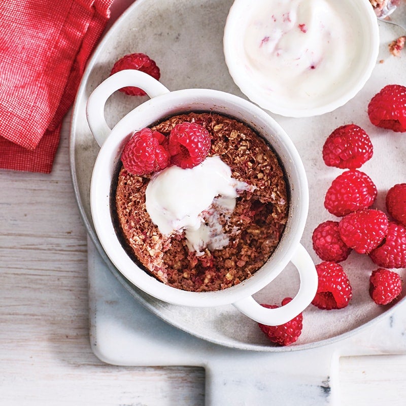 Spoon mixture into a 1-cup (250ml) capacity microwave-safe bowl or mug. Microwave, uncovered, on high (100%) for 1 minute 50 seconds or until cake starts to come away from the side and top is just firm. Serve with yoghurt.