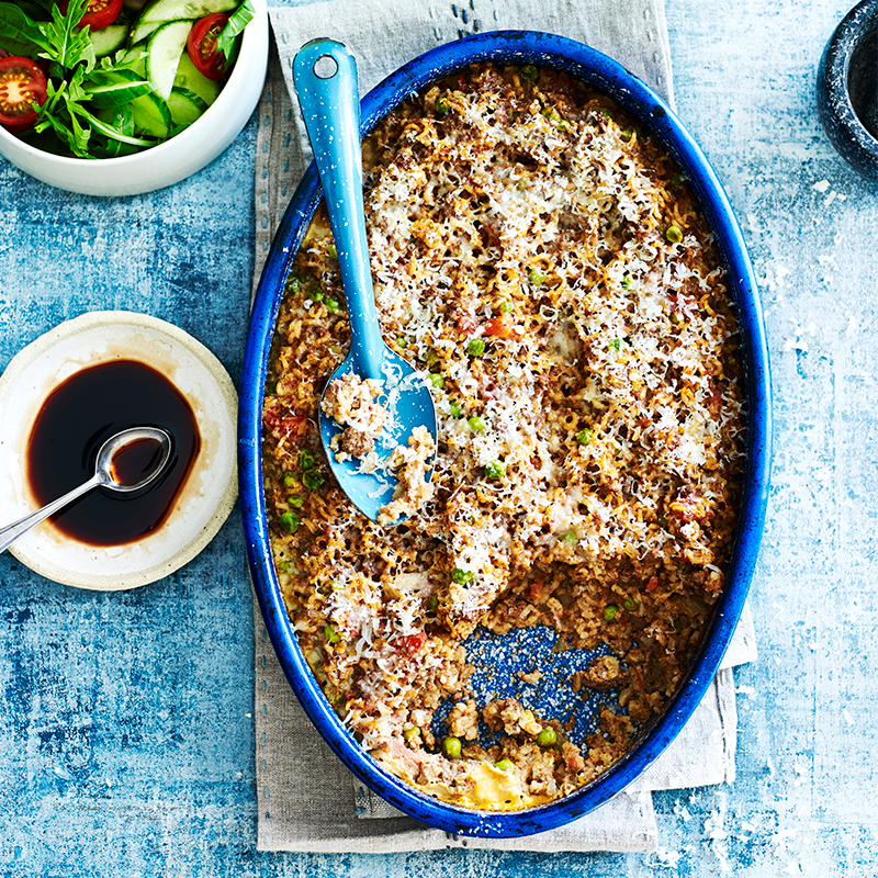 Add rice to beef mixture. Stir to combine. Season with salt and pepper. Stir in egg. Transfer mixture to prepared dish. Bake, covered with foil, for 25 minutes. Remove foil and sprinkle with parmesan. Bake for 10-15 minutes or until golden. Stand for 5 minutes before serving.