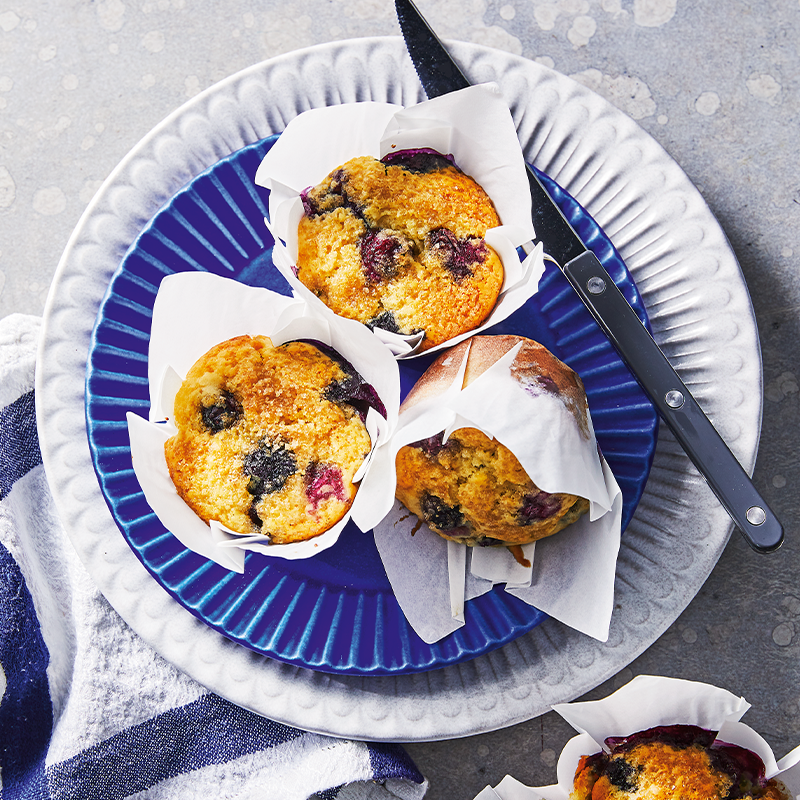 Packed with juicy blueberries, these super easy muffins are delicious eaten warm from the oven for morning tea, and can be stashed in the freezer for a grab and go snack.
