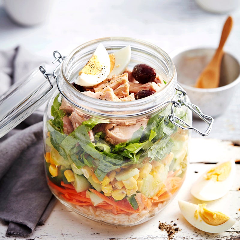 Brown rice and tuna salad in a jar
