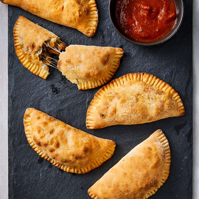 Made with a simple two-ingredient dough, these savoury turnovers are excellent served hot with a leafy salad, or equally as delicious eaten cold. Keep any leftover calzones in the fridge and pop into lunch boxes for a midday treat.