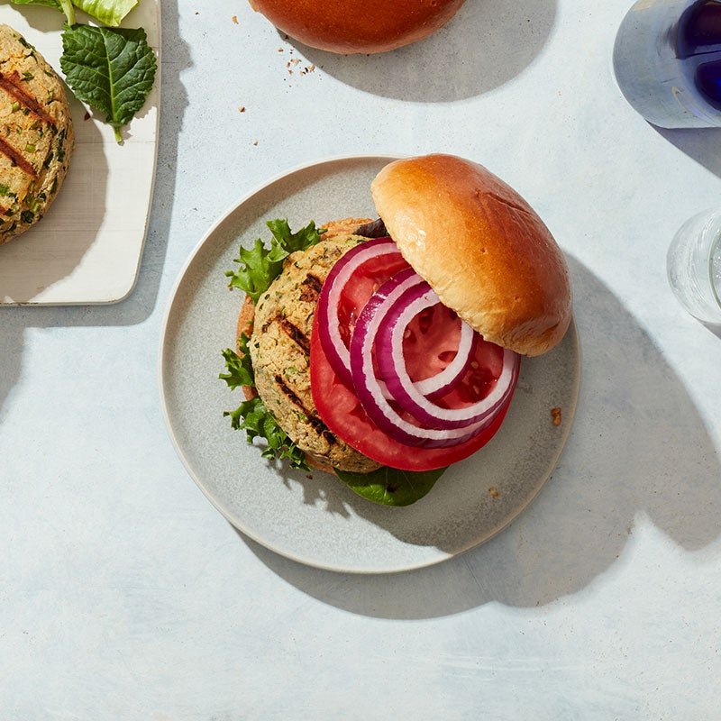 Fill rolls with lettuce, patties, tomato and onion. Serve.