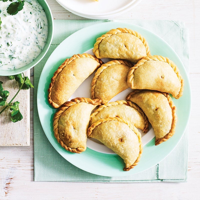 Place empanadas on prepared tray. Bake for 15 minutes or until golden. Combine yoghurt and coriander in a small bowl. Season with salt and pepper. Serve empanadas with coriander yoghurt.