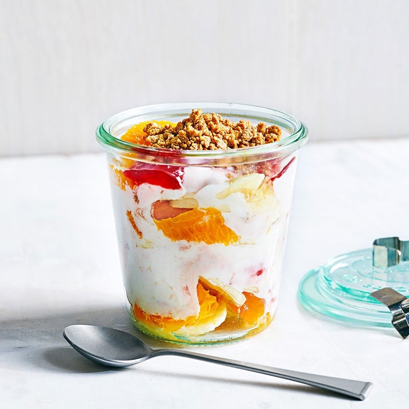 Fruit and yoghurt breakfast jars