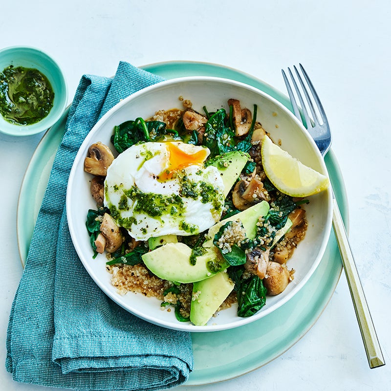 Flavour-packed, with a perfectly poached egg perched on top, this tasty veggie and grain bowl is guaranteed to make you feel good!