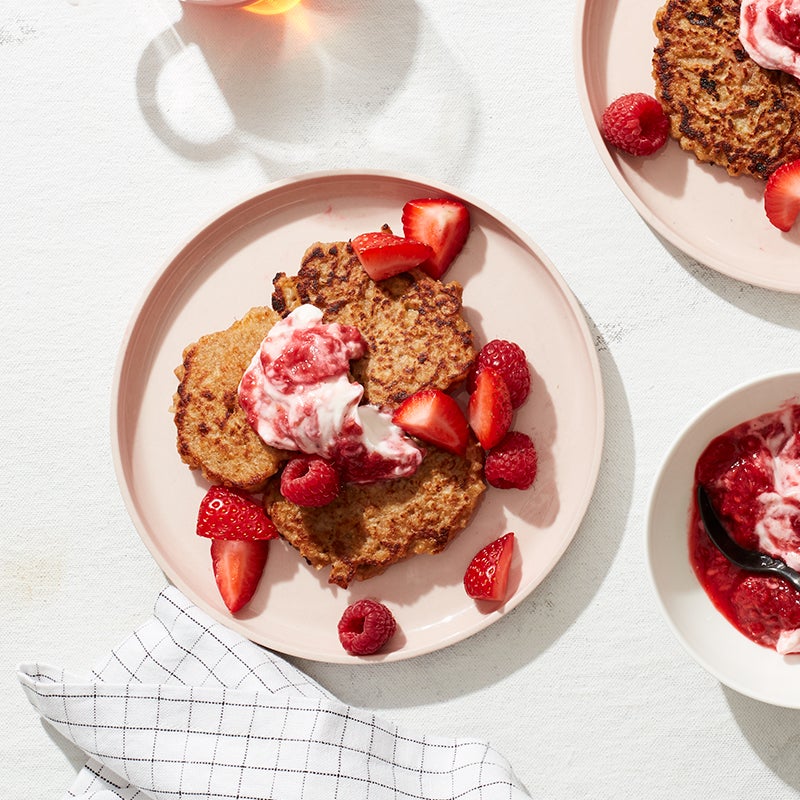 Overnight oat pancakes with berries