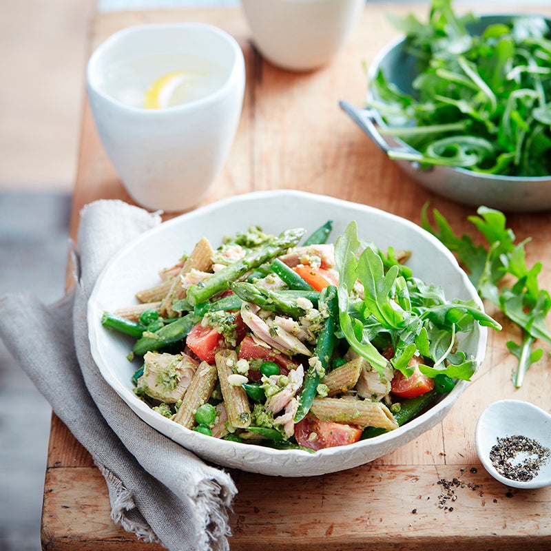 Pesto pasta with tuna and tomatoes