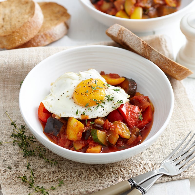 Meanwhile, heat oil in a large saucepan over medium-high heat. Cook the onion, garlic, bay leaf (if using), and thyme, stirring occasionally, for 10 minutes or until they just start to brown. Add eggplant, zucchini, combined capsicum, tomato and oregano. Season with salt and freshly ground black pepper. Bring to the boil. Reduce heat and simmer for 30 minutes or until vegetables are tender and the mixture thickens. Discard bay leaf and thyme.
