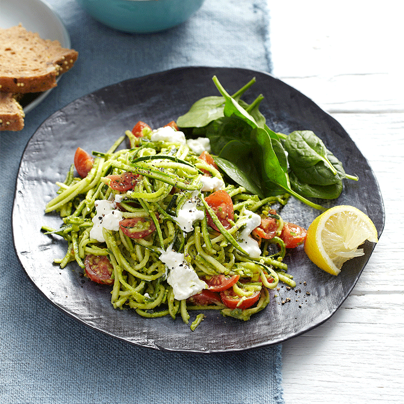 Raw zucchini pasta with avocado pesto