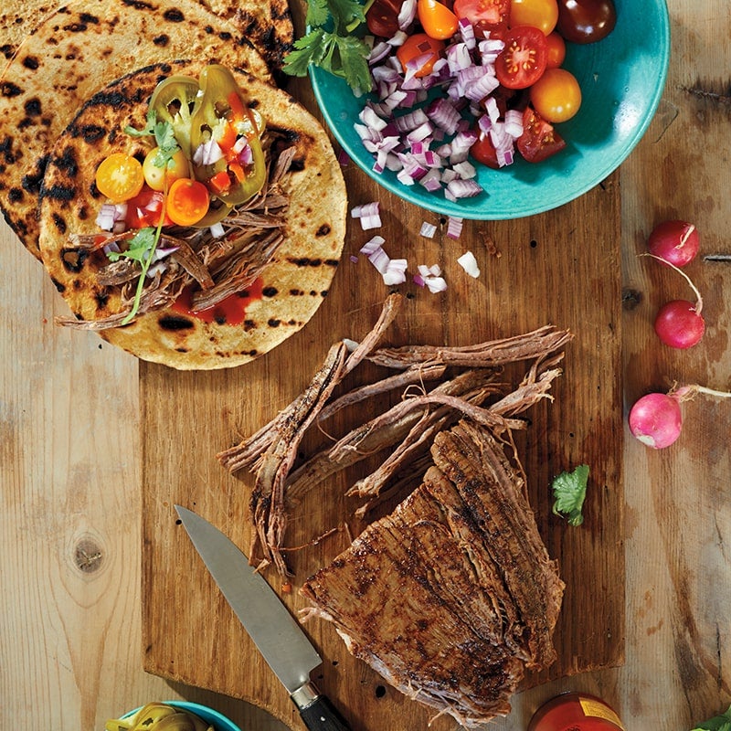 Slow-cooked steak tacos