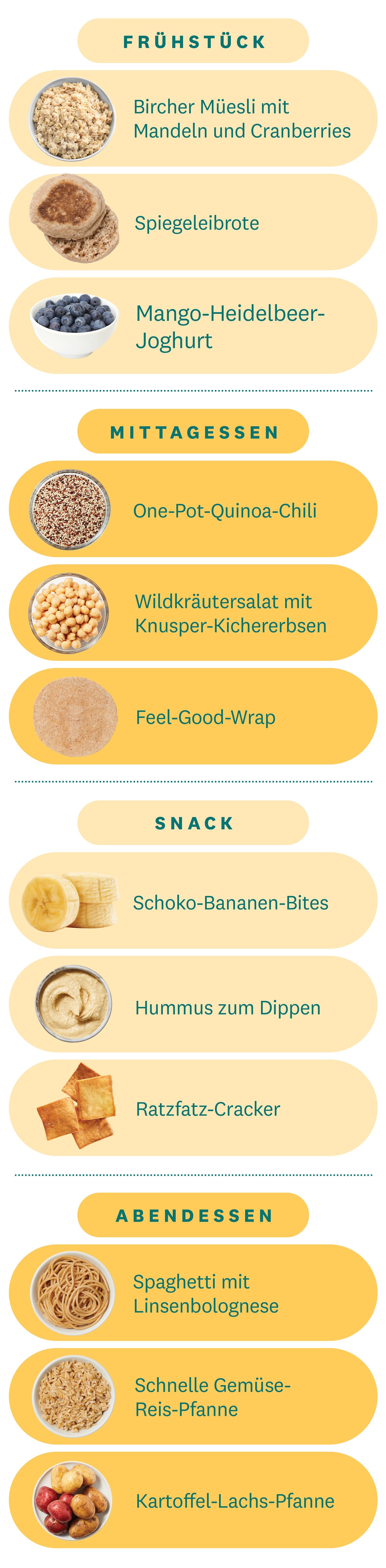 Kohlenhydrate werden oft zu Unrecht als Dickmacher verteufelt. Dabei sind Kohlenhydrate ein wichtiger Bestandteil der gesunden Ernährung. Daher sind sie keinesfalls als Feind zu sehen, wenn es ums Abnehmen und Wohlfühlen geht. Versuche diese Woche, jeden Tag kohlenhydratreiche Hauptmahlzeiten einzuplanen.