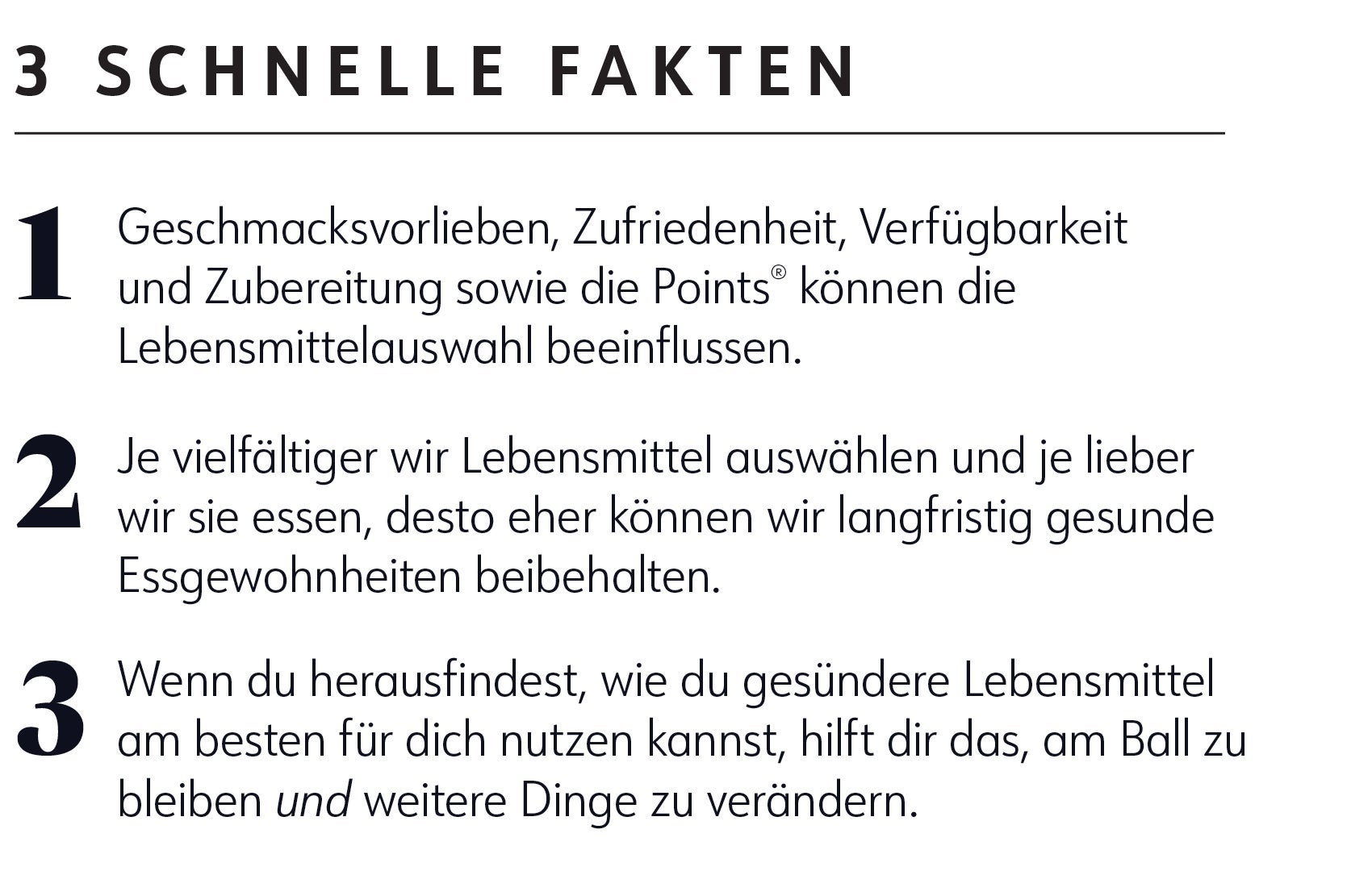 Erstens rüttelt dieses Bewusstsein eine ansonsten auf Autopilot ablaufende Essroutine auf. Ausserdem hilft dir die Verknüpfung von Essentscheidungen mit deinen Erfolgen dabei, bei deinen gesunden Favoriten zu bleiben. Ausserdem wird dein Selbstvertrauen gestärkt, mehr positive Veränderungen vorzunehmen und mehr neue Lebensmittel auszuprobieren. (Und: Mit etwas Glück findest du so Hinweise darauf, was du ausserdem noch mögen könntest). Das alles kann dazu führen, dass du mit Begeisterung gesunde Entscheidungen triffst.