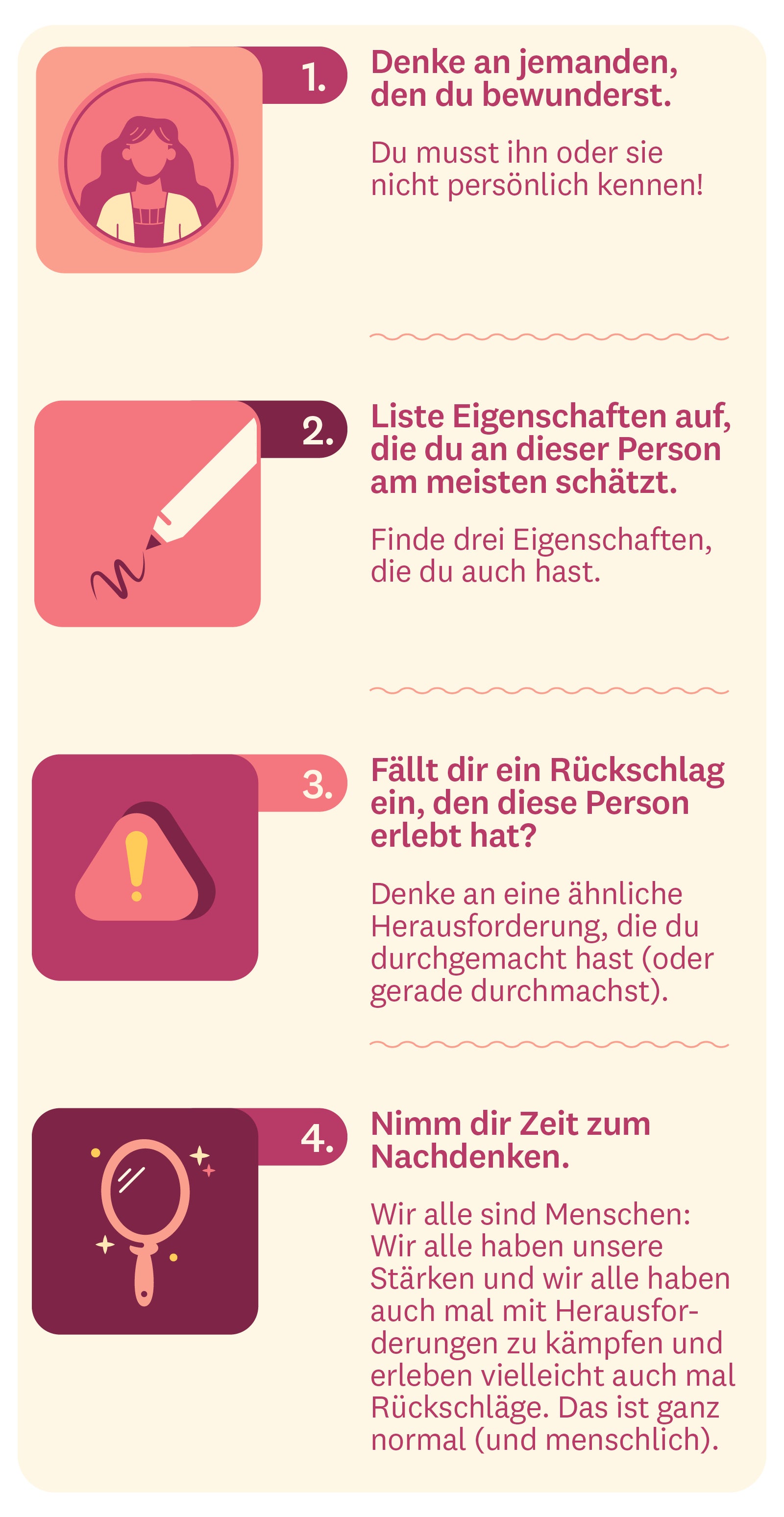 Hör auf, perfekt sein zu wollen, und überlege, was du mit jemandem gemeinsam hast, zu dem du aufschaust.