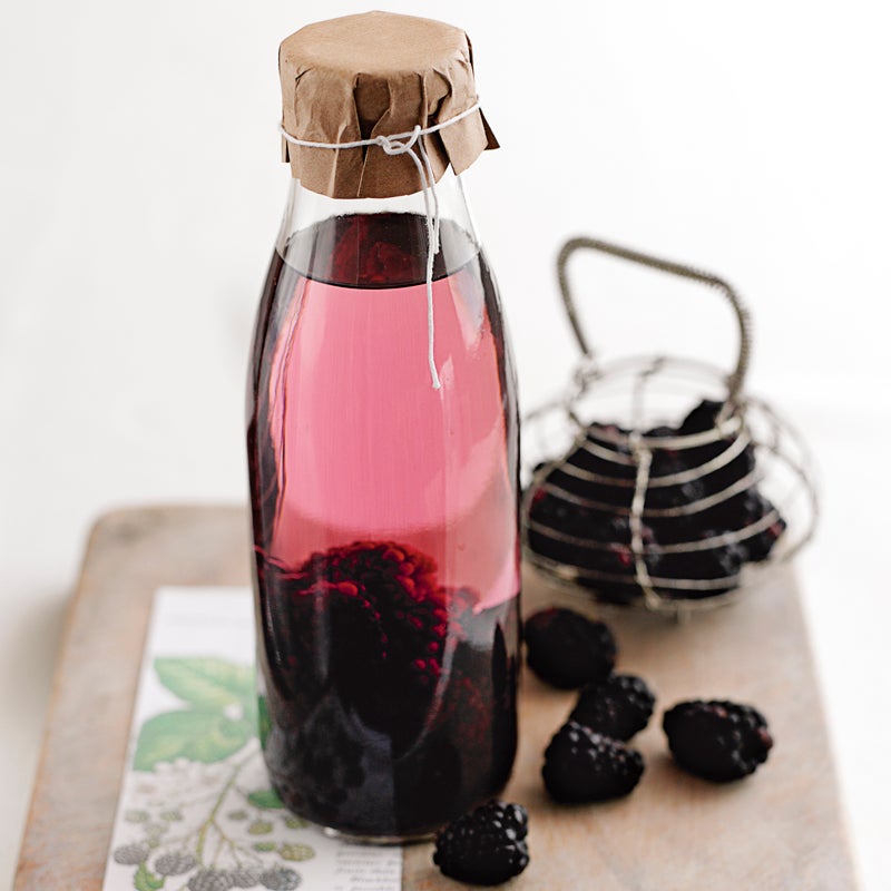 Brombeeren waschen und über Nacht ins Gefrierfach stellen. Gefrorene Brombeeren und Zucker in ein sterilisiertes 500-ml-Glas oder eine Flasche mit weitem Hals geben. Wodka darübergiessen und abdecken.