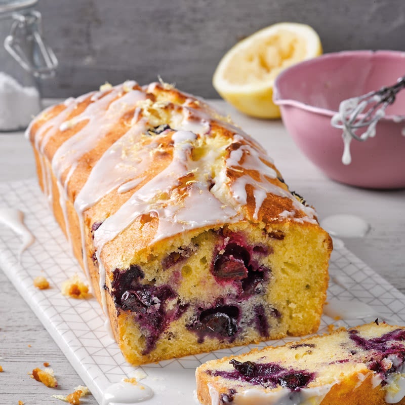 Heidelbeeren waschen, trocken tupfen und mit der Hälfte der Zitronenschale und 2 EL Zitronensaft unter den Teig heben. Eine Kastenform (Länge 30 cm) mit restlicher Margarine fetten, Teig hineinfüllen und im Backofen auf mittlerer Schiene 45–50 Minuten backen.