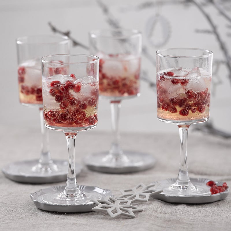 Granatapfelkerne auslösen und in 4 Sektgläser geben. Mit Prosecco und Eiswürfeln auffüllen und servieren.