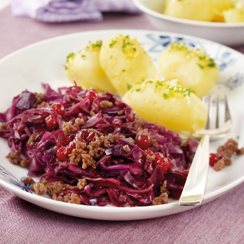 Rotkohlpfanne mit Hackfleisch