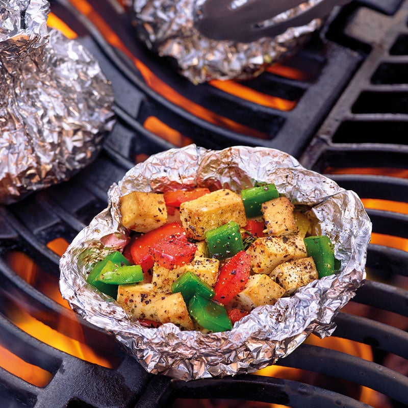 Peperoni waschen, entkernen und in Würfel schneiden. Tofuwürfel samt Marinade mit Peperoniwürfeln auf 4 Stücke Alufolie (ca. 30 x 50 cm) verteilen und zu Päckchen verschliessen. Tofu-Peperoni-Päckchen auf dem Rost bei indirekter Hitze 10–12 Minuten grillen. Scharfe Tofu-Peperoni-Päckchen servieren.