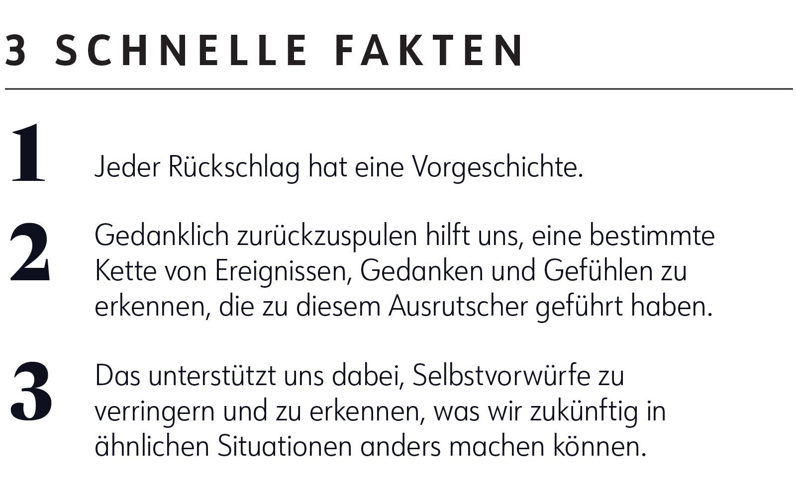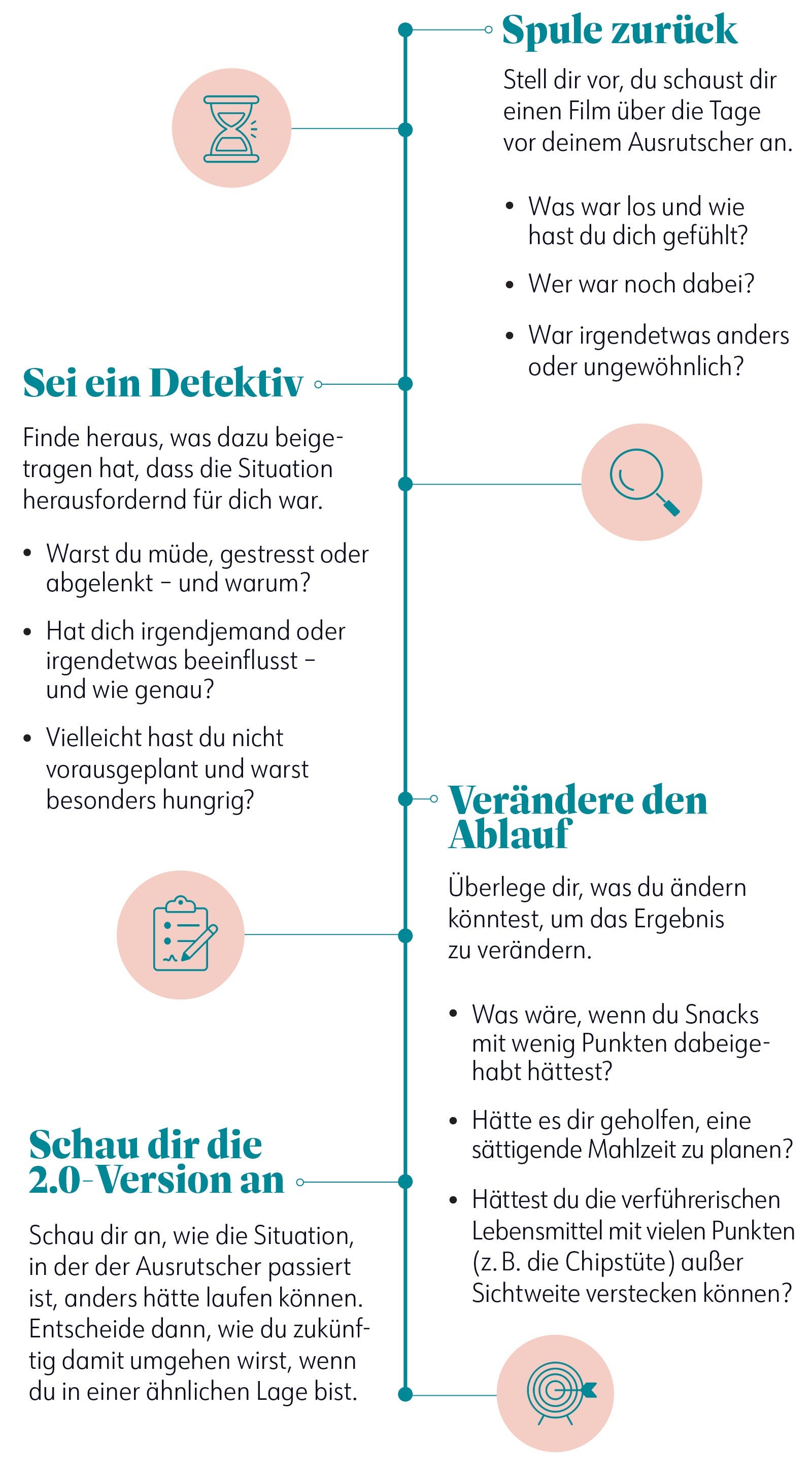 Anstatt darüber nachzudenken, wer oder was die Schuld trägt, solltest du Ausrutscher als eine Chance betrachten, um dich weiterzuentwickeln. Wenn du das Geschehene noch einmal Revue passieren lässt und dir bewusst machst, wodurch es beeinflusst wurde, fällt es dir leicht, beim nächsten Mal anders zu handeln – und so in Zukunft erfolgreicher zu sein.