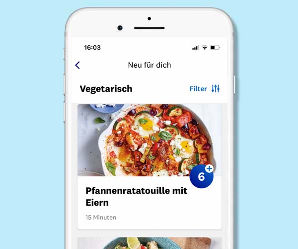 In der Appfindest du über 12.000 Rezeptideen – ob zum Brunchen, für Dips oder Burger (ja, auch die sind dabei). Es gibt alles, was das Herz begehrt. Immer mit der auf deinen Plan abgestimmten Punktzahl.