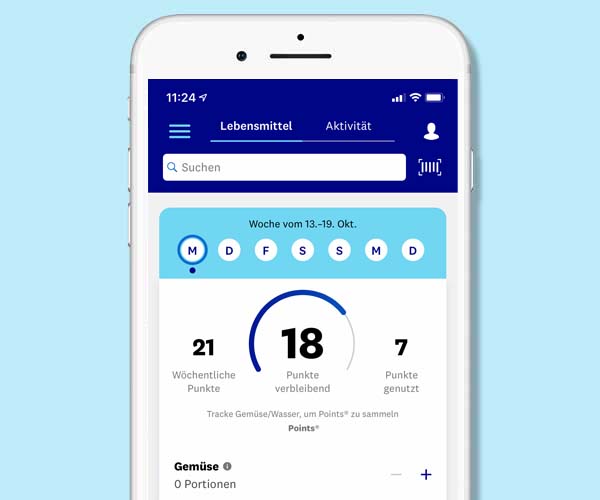 Auf der Startseite der App findest du dein Tagebuch, mit dem du einen Überblick über dein tägliches und wöchentliches PersonalPoints Budget hast. Hier kannst du einfach Mahlzeiten, Wasser, Bewegung, Schlaf und jetzt neu! Gemüse tracken. Denn das gab's noch nie bei WW: Wenn du Gemüse isst, Wasser trinks und dich bewegst, kannst du dein PersonalPoints Budget aufstocken.
