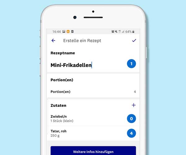 Gibt es ein Essen, das du regelmäßig isst? In der App gibt es eine Funktion, mit der du Rezepte erstellen und speichern und die jeweiligen Punkte jederzeit schnell erfassen kannst. Du kannst deine Lieblingsrezepte außerdem auch als Favoriten speichern.