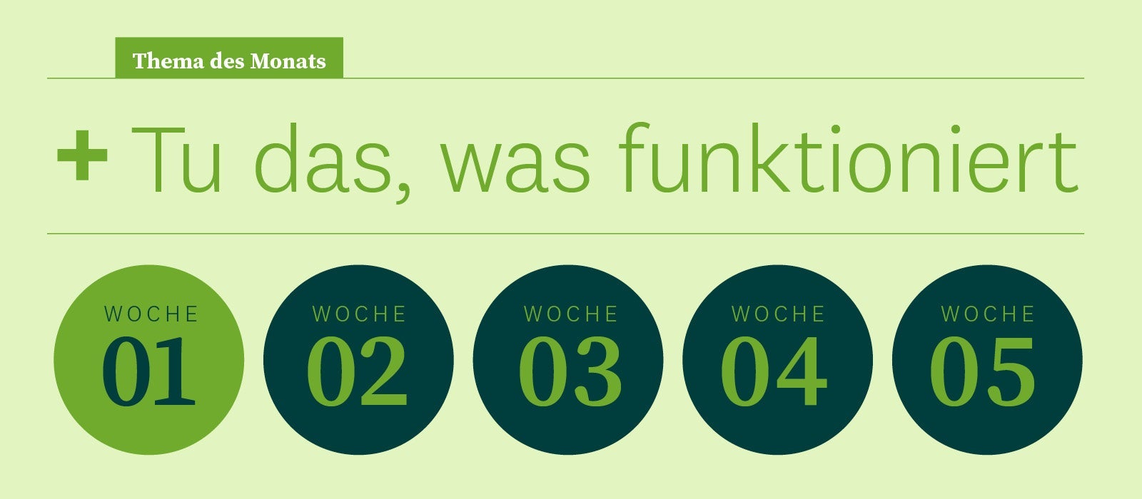 Erfahre hier mehr über das Monatsthema „Tu das, was funktioniert"!