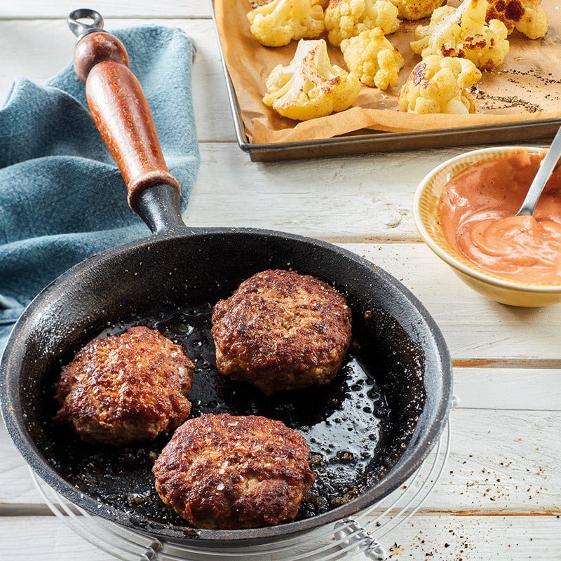 Frikadellen mit Cocktaildip und Blumenkohl