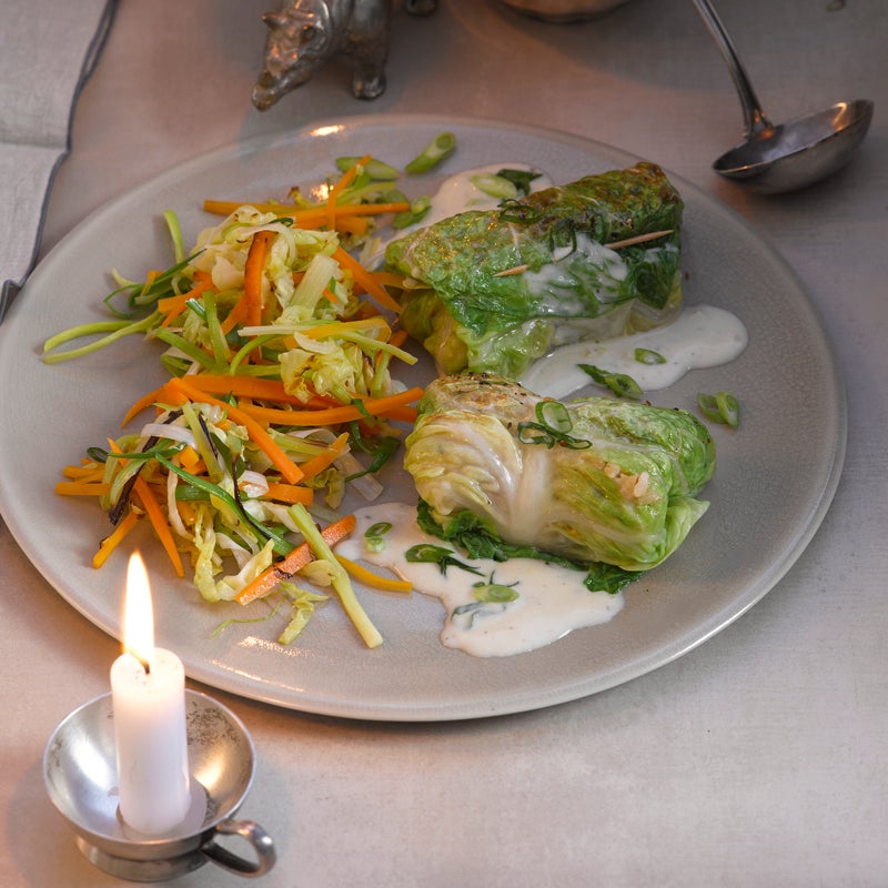 Geschmorte Wirsing-Risotto-Päckchen