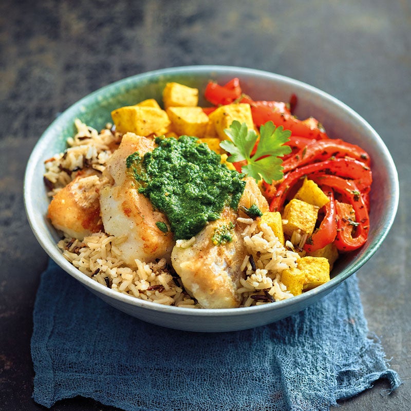 Kabeljau-Bowl mit Wildreis und Gemüse