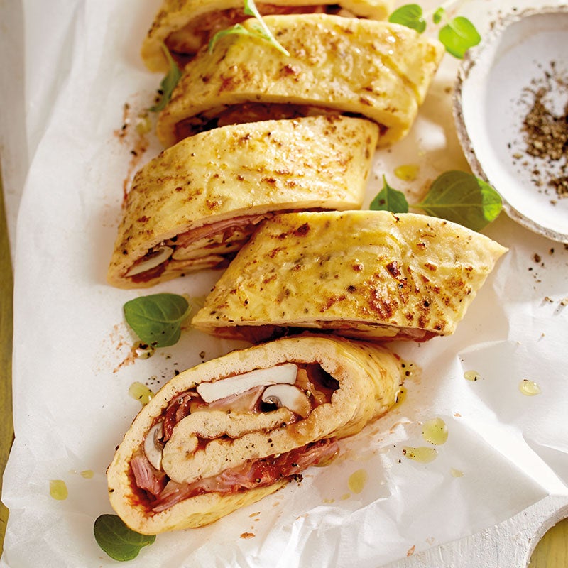Pizzarolle mit Schinken und Champignons