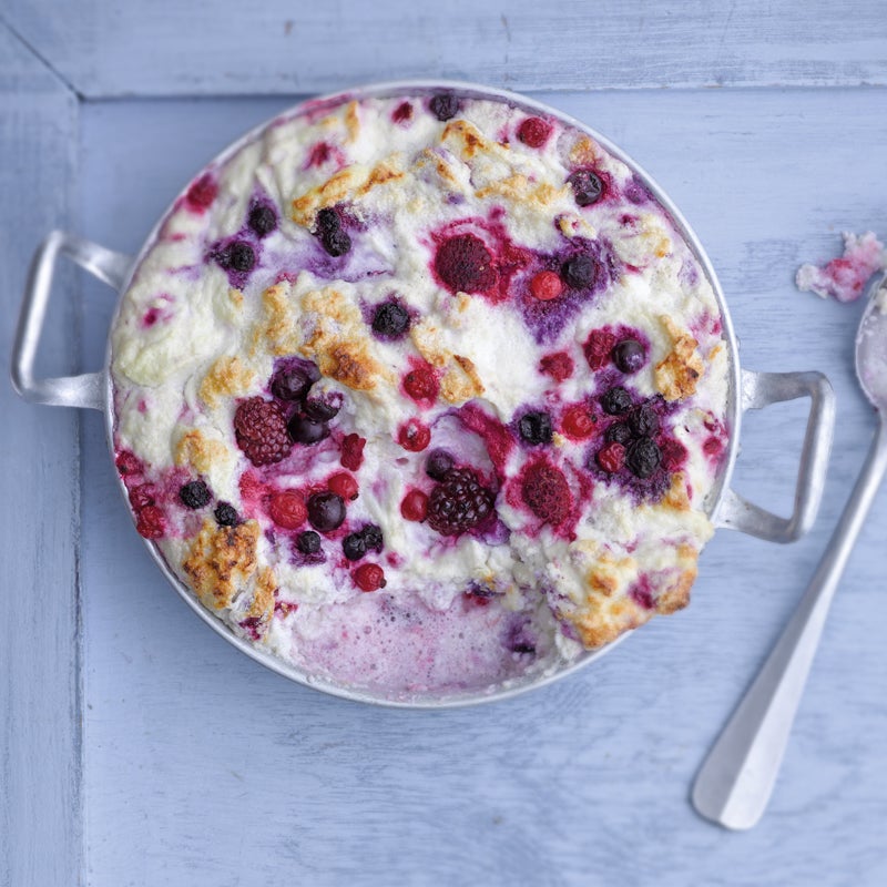 Backofen auf 180° C (Gas: Stufe 2, Umluft: 160° C) vorheizen. Eier trennen und Eiweiß steif schlagen. Eigelb mit Quark, Puderzucker, Zitronensaft, Beeren, Grieß und Backpulver verrühren. Eischnee unterheben.