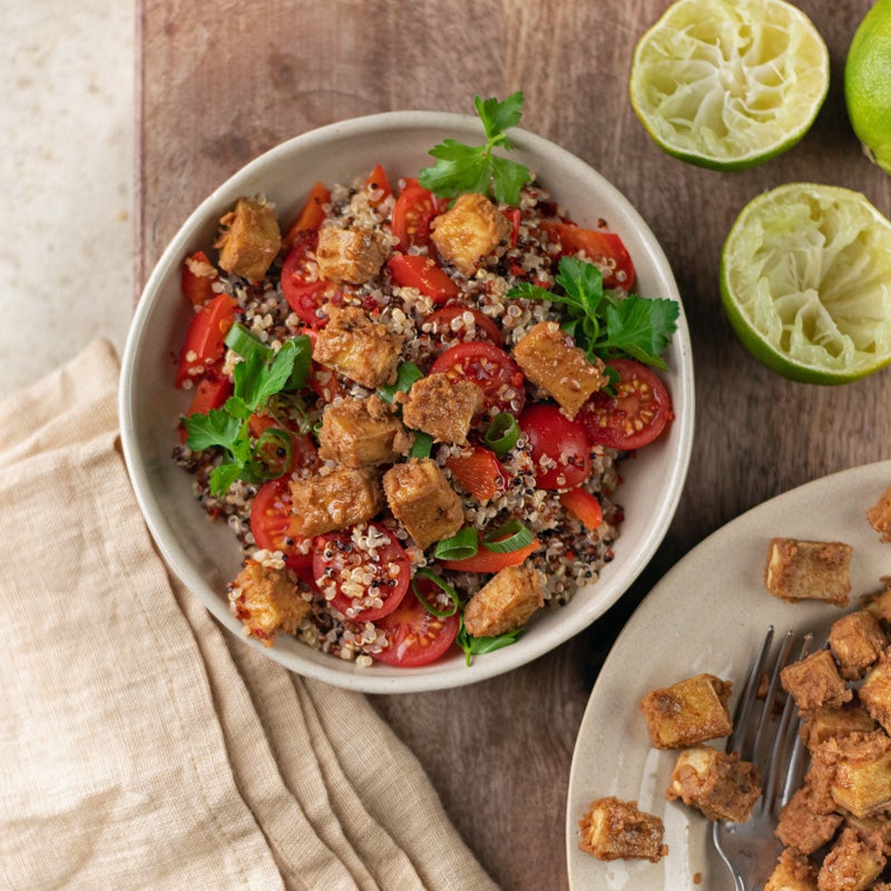 Der Tofu passt perfekt zum Beispiel zu einem frischen Quinoasalat. Das Rezept findest du in der WW App.