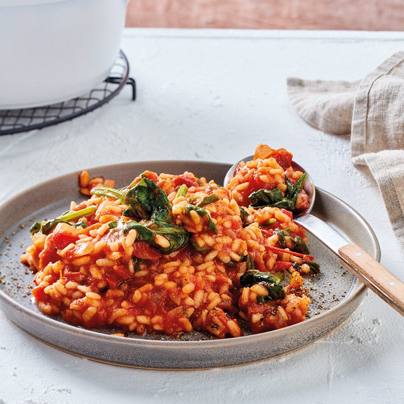 Tomatenrisotto mit Spinat