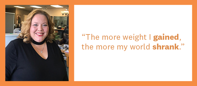 The more weight I gained, the more my world shrank. I’d agree to hang out with friends just so they’d stop pressuring me, then cancel hours before we were scheduled to meet. I was so ashamed of my appearance that I didn’t want anyone to see me. In many ways, I stopped living.