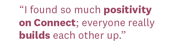 It’s amazing that I joined with one “real life” friend and now have over 800 fellow members following my journey on Connect. Whatever path you’re on, finding people who understand your goals and difficulties can make all the difference.