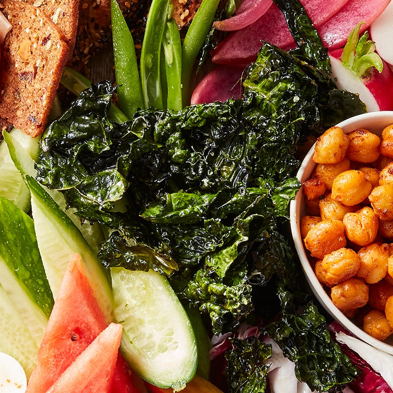 These chips are better than what you can buy and so much kinder on the wallet! Even better? They’re much easier to make at home than you may think. Crunchy, cheesy, and garlicky, they make a healthy salty snack, or you can branch out and try them crumbled over salads, soups, or casseroles. To achieve a super crispy texture, dry them well after rinsing. And don’t crowd them on one pan. Spread the leaves in a single layer between two pans so that they’ll cook evenly and won’t steam and wilt. Store them in airtight container—they’ll stay crisp up to 3 days.