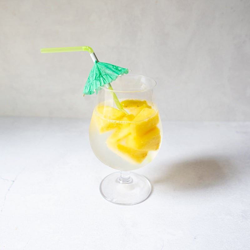 This might just be the most refreshing sipper you’ve ever tasted. If you love the flavor of piña coladas but find them to be a little too rich and heavy, this easy riff will be right up your alley. Pineapple-coconut hard seltzer is given some zing with fresh lime juice, then poured into a glass filled with frozen pineapple chunks (look for them with the other frozen fruit in the supermarket). The frozen chunks keeps the drink refreshingly cold, and you get the bonus reward of noshing on it when you finish your drink.